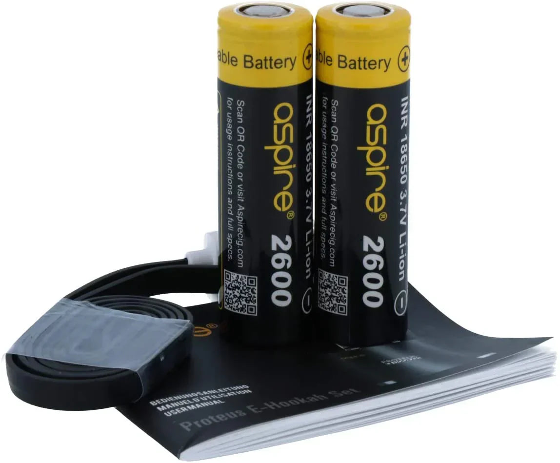 - 2 x Aspire 18650 Batteries (2,500 mAh Each)