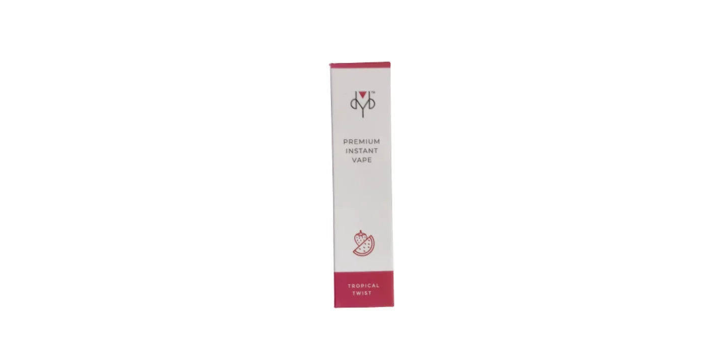 DYB Tropical Twist brought to you by the DYB team offers exotic medley of tropical fruits, blended together with subtle notes of mint for a cooling sensation with 50mg of flavored e-liquid nicotine which is 95% less harmful than smoking (Research by Health Public UK).
